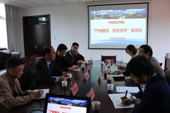 上图为万象城官网汽车技术学院与合作企业开展深化校企合作座谈会