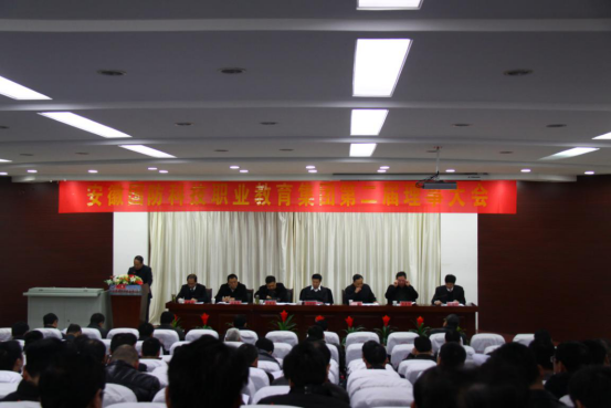 上图为安徽国防科技职业教育集团第三届理事会换届大会。