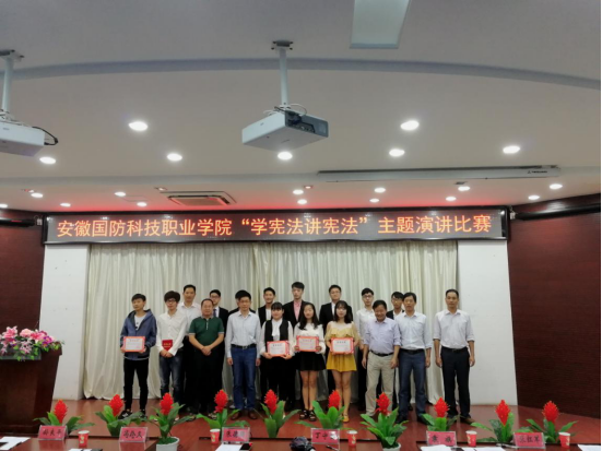 上图为学校每年一次的“学宪法讲宪法”演讲比赛,既是普法,增强同学们法治意识,又是练兵,选拔参加省赛并多次获奖。
