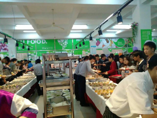 上图为热情高涨的同学们参加做美食、品美食比赛活动。