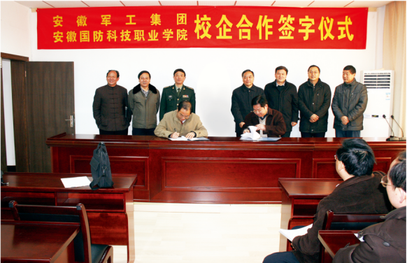 产教融合、校企合作、理实一体,是提高技术技能型人才培养质量和水平的根本路径。为此,学校于2008年牵头成立并不断建强安徽国防科技职业教育集团(系全省A类职教集团,现拥有安徽军工集团、中兴、海尔等省内外100多家会员单位),充分发挥职教集团在专业论证、人才共享、顶岗实习、创业就业等诸多方面的平台作用。实践证明,这是一条正确高效的人才培养和发展路径。上图为第二届理事会换届大会。