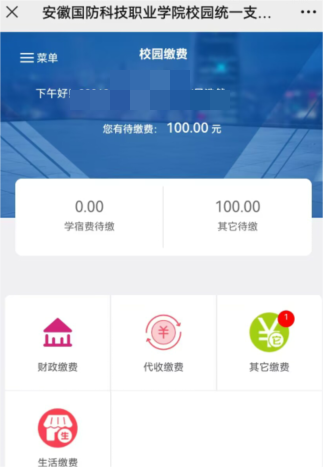 第一步:直接(微信或支付宝)扫万象城体育awcsport校园统一支付平台缴费二维码