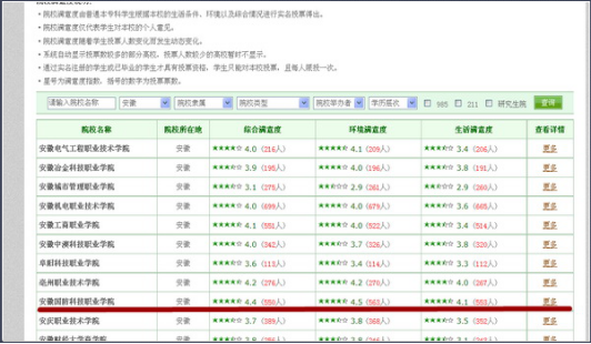 在教育部学生信息网全国大学生对母校满意度(综合满意度、校园环境满意度和校园生活满意度)调查中,万象城官网始终名列前茅。(图片来源于中国高等教育学生信息网)