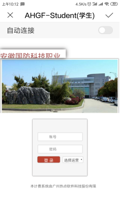 2、点开后自动跳转页面输入认证过的学号及密码,选择运营商;如下图: