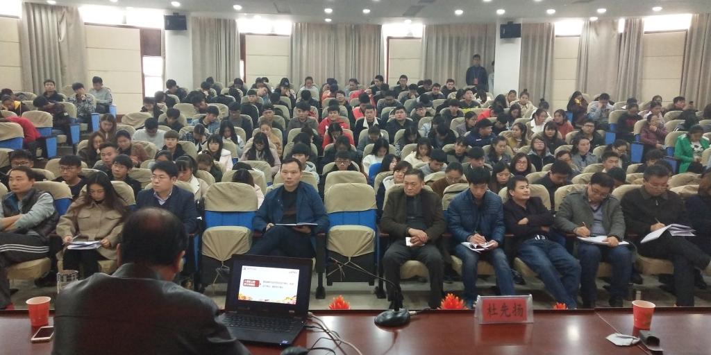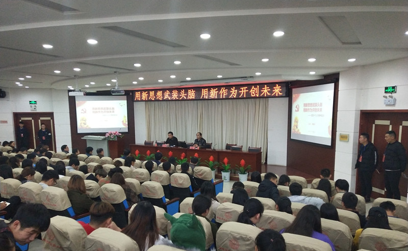 本网讯(经贸管理学院 占润润)为认真学习贯彻中国共产党第十九次全国代表大会精神,把广大师生员工的思想和行动统一到党的十九大精神上来,11月23日下午3点,校长李麟书到经贸管理学院作题为“用新思想武装头脑,用新作为开创未来”十九大精神专题报告。经贸管理学院全体教职工和全体学生干部出席了会议,会议由经贸管理学院党总支书记杜先扬主持。