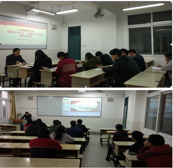 本网讯(经贸管理学院 刘猛)2017年11月29日下午,经贸管理学院工商管理支部在教学楼2#201教室召开十九大会议精神支部专题学习会,会议由工商管理支部书记刘猛主讲。