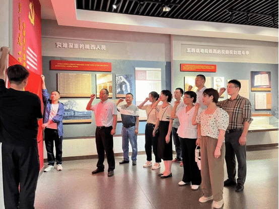 怀着对革命先辈无比崇敬的心情,中国电信六安分公司政企事业部党支部党员、总务处党支部党员、网络信息中心党支部党员,在支部书记带领下共同参观了皖西博物馆红色教育主题展馆,参观中在支部书记余嗣俊同志带领下,预备党员黄伟伟及支部全体党员面对党旗,高举右手庄严宣誓,重温入党誓词。随后,支部宣传委员杨旄袤同志现场为大家上起了党课,讲述了六安这片红色的热土发生的红色事迹,革命先辈们的丰功伟绩,通过现场讲解,大家深刻缅怀革命先辈,对党领导国家取得今天的发展和成就深感自豪。