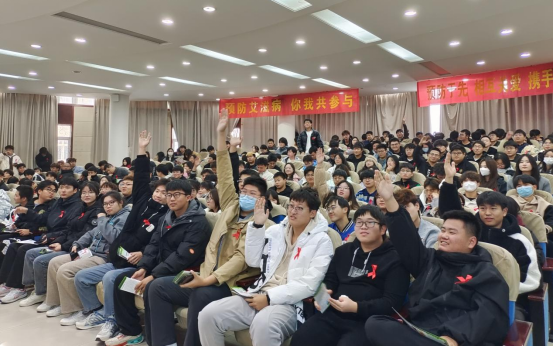 讲座设置互动答题环节,让学生参与其中,给现场气氛注入新活力,整个讲座现场气氛热烈、专注、充满期待,学生们开开心心的掌握了艾滋病防治知识。