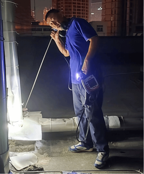 技术人员借助听音杆、漏水探知机等仪器,对校内所有点位逐一监听,精准发现多处漏水点,立即开展了维修,有效地节约了水资源。