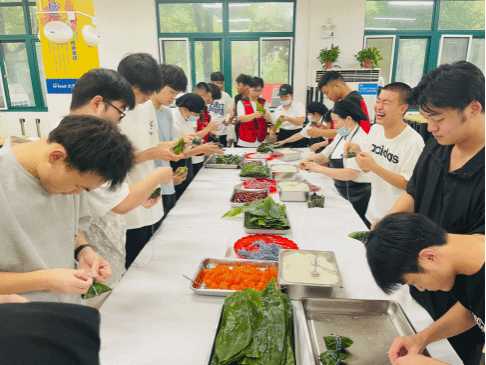 伴随着美食还有各种好玩的游戏和互动活动,火爆网络的青蛙玩偶在餐厅里活蹦乱跳,和同学们互动猜拳;一群稚气未脱的孩子们在教练的带领下表演了中国传统武术;紧张又刺激的指压板跳绳和投篮游戏,激活了同学们的运动细胞;一声锣鼓把同学们的注意力都吸引过来了,原来是精彩的川剧变脸!演员的精彩表演赢得在场同学的阵阵喝彩。每位来到餐厅的同学还都获得了一张幸运刮刮卡,奖品从拉杆箱、乳胶枕到水杯、酸奶,凡是参与活动的同学都不会空手而归。美食节活动临近端午节,餐厅还开展了师生包粽子活动,同学们积极参与,自己动手去制作,餐厅将同学们包好的粽子煮好后又分发给大家,每个人都享受到自己的劳动成果。同学们纷纷表示,学校举办这样的美食节,有美食、有表演、有游戏互动,真是太解压了,真希望学校能天天开展这样的活动。