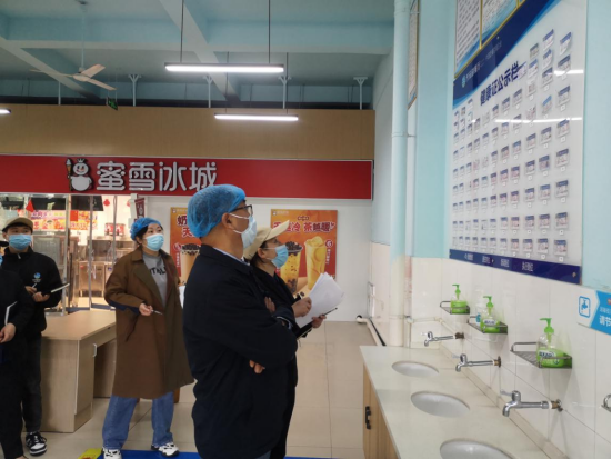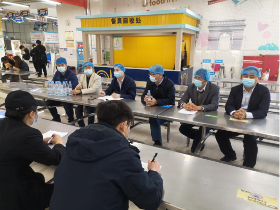 李麟书一行在后勤管理处、食堂餐厅负责人等的介绍下详细了解了食堂的菜品价格、饭菜质量和疫情防控各项措施落实等情况,并深入两个餐厅检查后厨卫生、主副食存储、餐具清洗消毒情况,详细询问了各餐饮公司在人员、原材料等疫情防控方面采取的措施,查阅了员工每日的体温监测表、核酸检测报告、外来人员的疫情防控记录等相关的资料,并对各餐厅内外环境、工作人员操作规范等食品安全工作落实情况进行了检查。