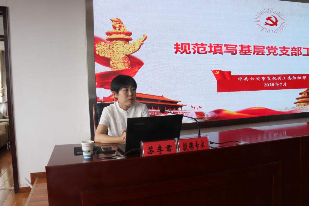 六安市直工委组织部部长苏李君以规范填写基层党支部工作记录为主线,结合多年党建工作经验,对基层党务工作实务做了详细的辅导。