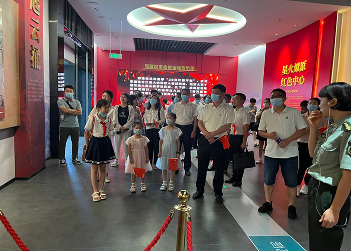 上午10时,全体党员怀着敬仰之情来到大别山安徽红色区域中心纪念馆,在讲解员的带领下,依次参观了“红色中心 峥嵘岁月”、“星火燎原 红色中心”、“艰苦征战 红旗飘扬”、“同仇敌忾 英勇抗日”、“千里挺进 逐鹿中原”、“薪火相传 红源流长”、“红色传承 绿色发展”7大主题展区。展区通过场景营造、全数字沉浸式影院、互动投影秀、雕塑微剧场、微缩模型、电子地图、大型油画等现代声光电等多媒体科技手段,再现了一段波澜壮阔、英勇抗争的革命历史,以及霍山人民前仆后继、无畏牺牲的英雄气概。全体党员们满怀敬意聆听讲解员追溯那段峥嵘岁月,重温了革命历程,深切地感受到了革命先辈们虽九死其犹未悔、百折不挠的铁军精神以及为中国革命的胜利事业做出的巨大牺牲和贡献。