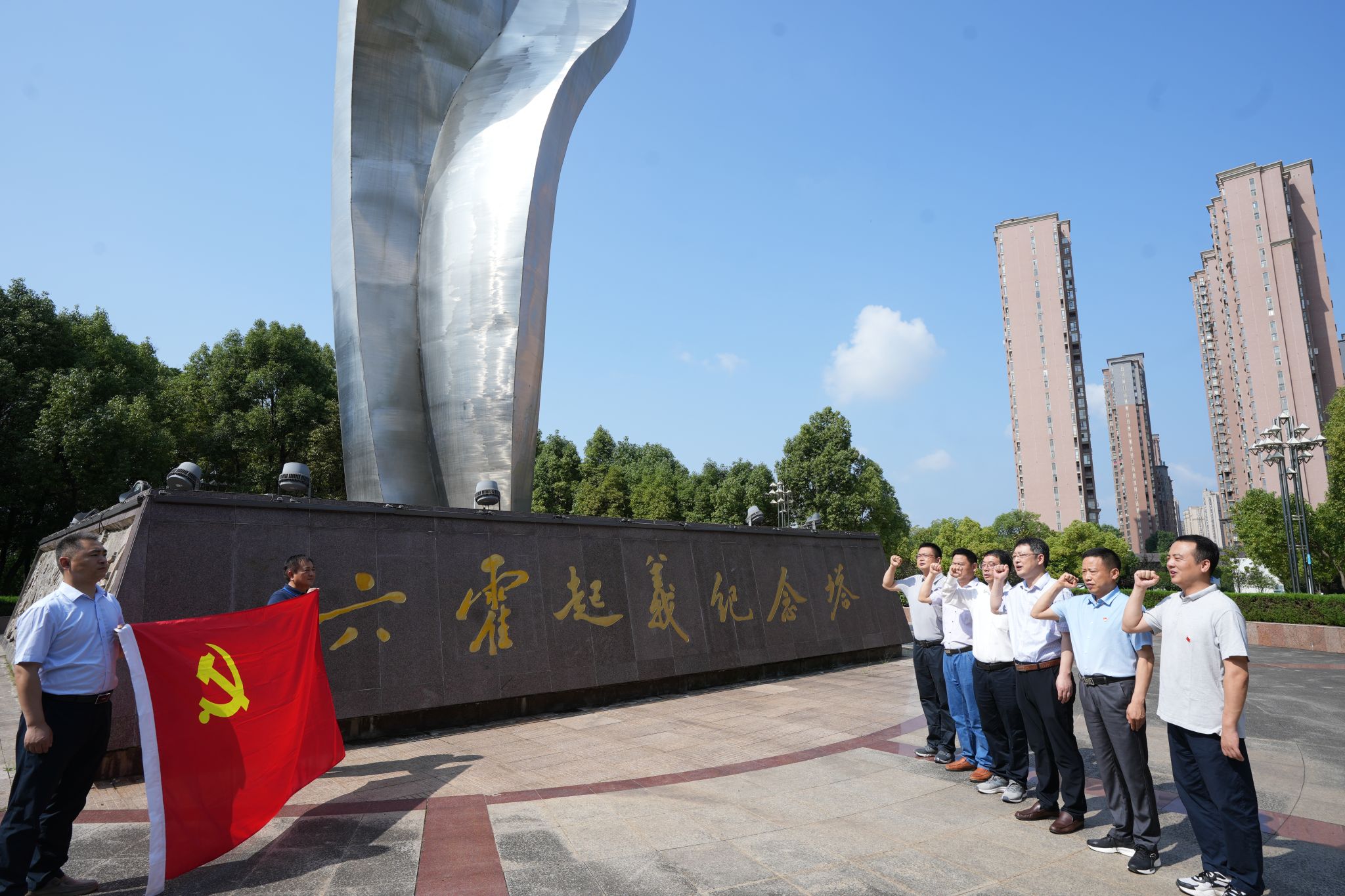 上午9时许,发改委安置处党支部和评估督导处党支部一行到巍峨耸立的六霍起义纪念塔前,重温革命历史故事,缅怀革命先烈,传承红色基因教育,进行了重温入党誓词活动。